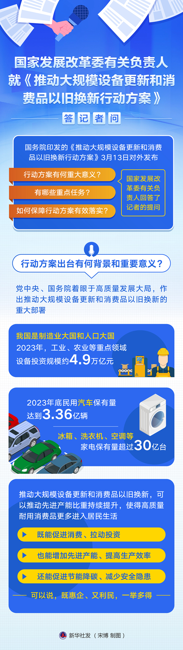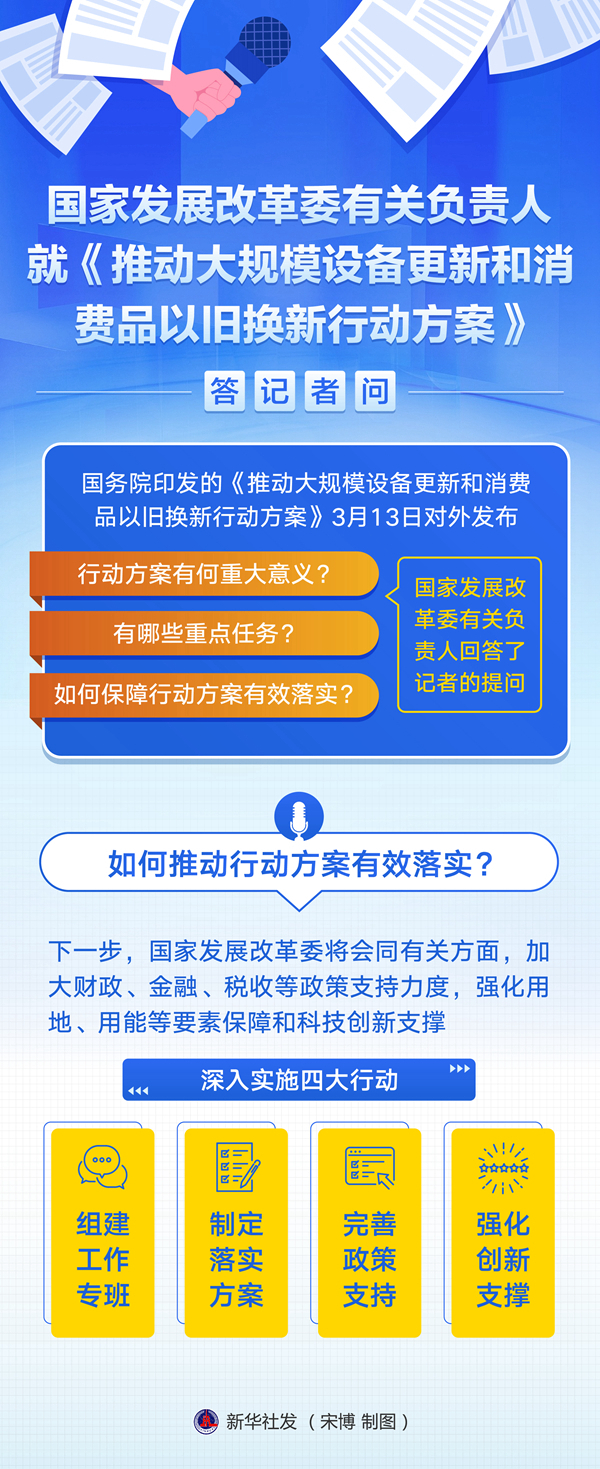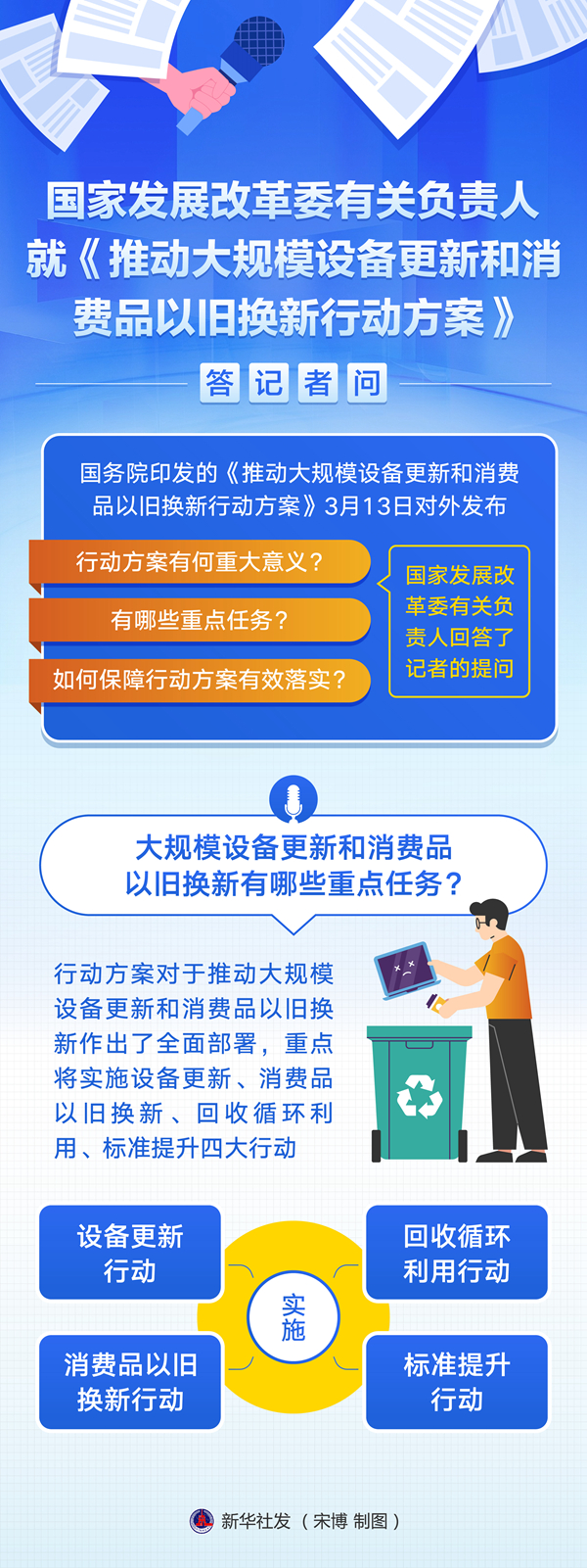 新华社北京3月13日电 题:国家发展改革委有关负责人就《推动大规模设备更新和消费品以旧换新行动方案》答记者问