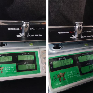店主分别按下“M1、M2、M3、计数、电压、动态”等几个按键,同一桶洗洁精居然分别显示出“1175、1230、1285、1345、1400、1455”几个称重数值,最大增重335克。