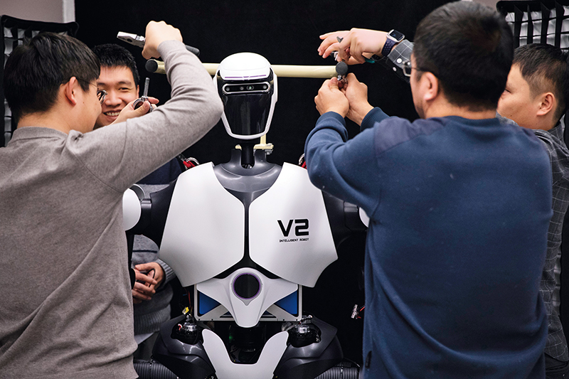 人形机器人攻关团队科研人员在多模态人工智能系统全国重点实验室调试机器人(2024年1月31日摄) 金立旺摄/本刊