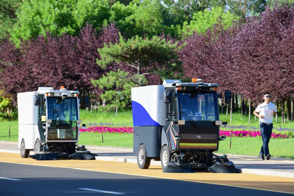 2023年7月6日,自动驾驶清扫车在鄂尔多斯市康巴什区街头作业。新华社发(王正摄)
