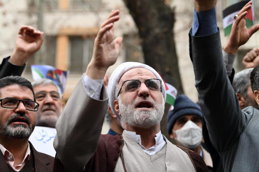 1月14日,人们在伊朗首都德黑兰参加集会。据伊朗法尔斯通讯社报道,数千名法学家、律师和司法官员14日在伊朗各地举行集会,抗议以色列对巴勒斯坦人犯下的罪行。新华社记者沙达提摄