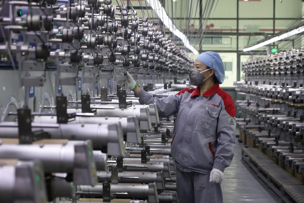 2月22日,在中复神鹰碳纤维西宁有限公司车间,工人在工作。新华社记者 王浡 摄