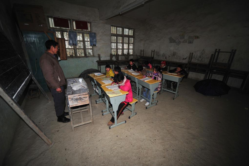 在桂林市全州县蕉江瑶族乡大源小学,师生们在教室里上课(2011年1月10日摄)。新华社记者 黄孝邦 摄