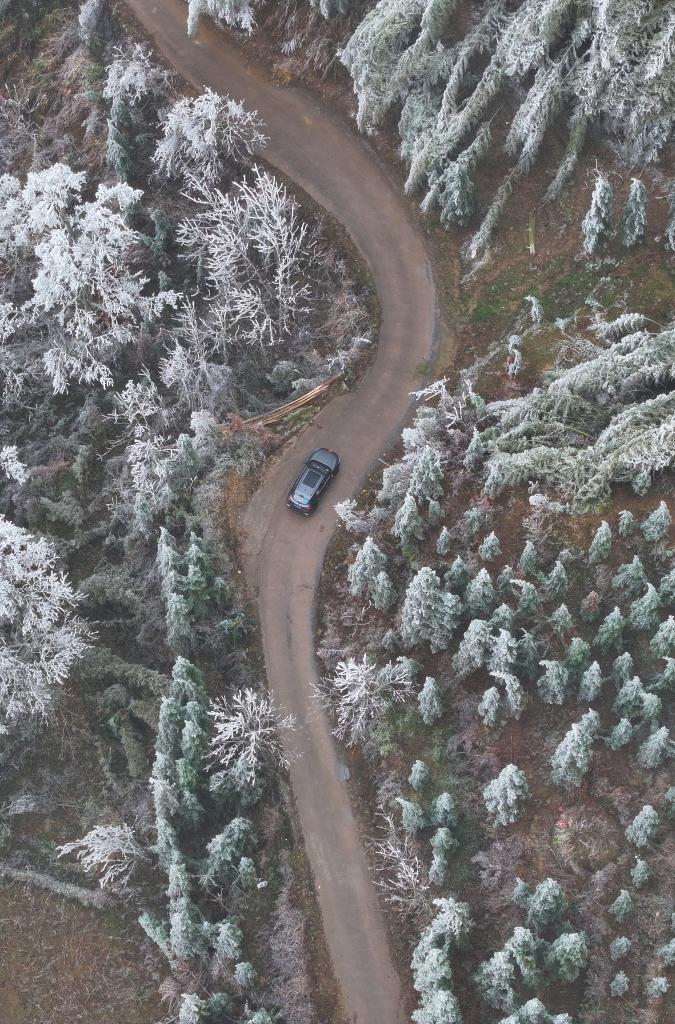 大源村村民凤艳萍和爱人驾车送妹妹去乡中心小学上学(无人机照片,2024年2月28日摄)。新华社记者 黄孝邦 摄
