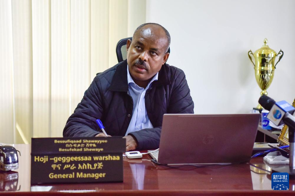3月6日,在埃塞俄比亚首都亚的斯亚贝巴,贝莱内·金迪金属工程公司总经理谢瓦耶接受新华社记者采访。新华社发(迈克尔·特韦尔德摄)