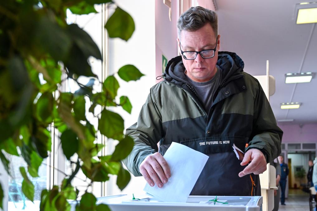 3月15日,选民在俄罗斯首都莫斯科参加总统选举投票。新华社记者曹阳摄