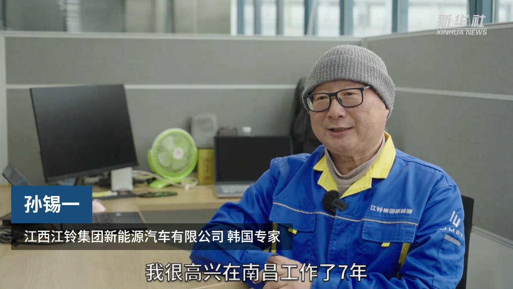 58岁的孙锡一来自韩国,是江西江铃集团新能源汽车有限公司的工程师,负责整车控制器自主研发。他深耕新能源领域30年,已在这家企业工作7年。