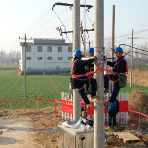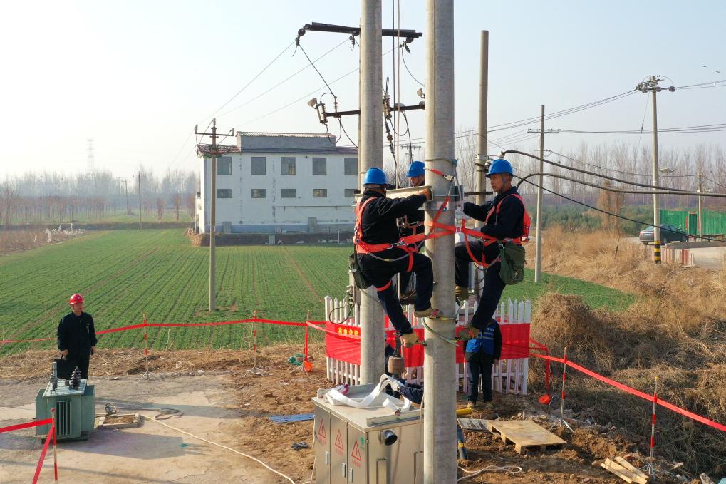 石家庄市电力工人为高标准农田安装200千伏安变压器。新华社记者 王昆 摄