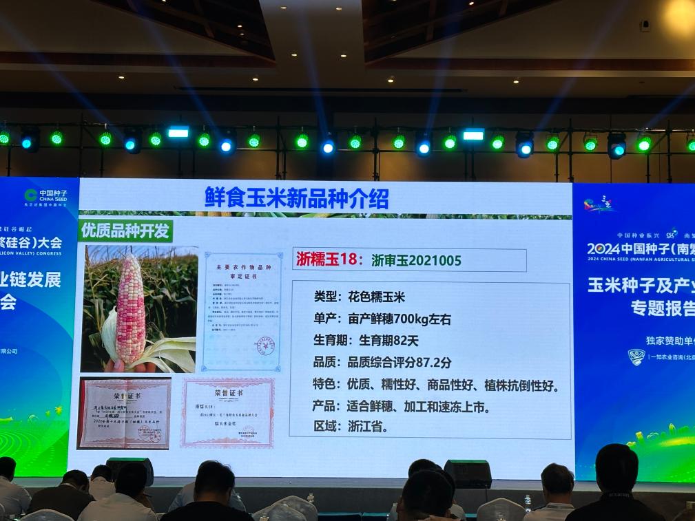 科研人员在2024中国种子(南繁硅谷)大会上介绍鲜食玉米品种。新华社记者陈凯姿 摄