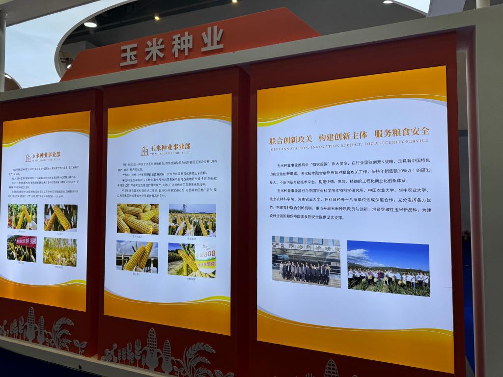 企业在2024中国种子(南繁硅谷)大会上展示其玉米育种创新攻关情况。新华社记者郁琼源 摄