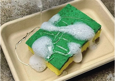 淋上“洗洁精”,“百洁布”在餐盘上抹上一圈后,被店员放入口中食用……这样的猎奇视频在短视频平台上大量传播。不少人纷纷感慨评论道:“起猛了,百洁布也能吃?”其实,视频里的“百洁布”是一款造型独特的蛋糕食品,并配以糖浆做的“洗洁精”、奶泡做的“泡沫”,以达到独特的视觉效果。