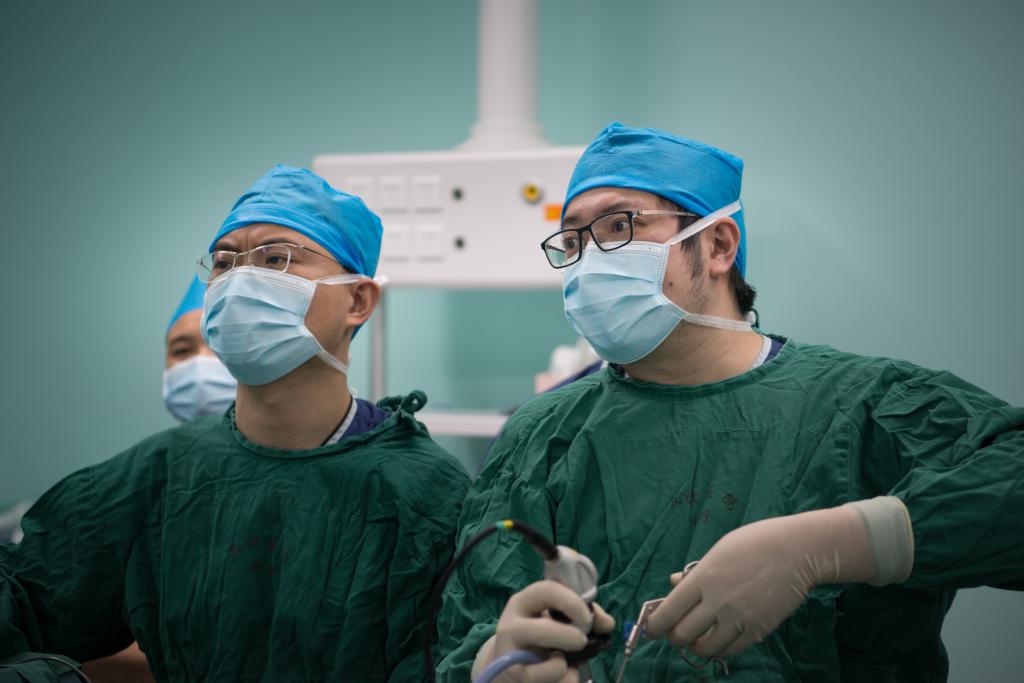 图为首都医科大学附属北京友谊医院骨科副主任医师祝斌(右二)在为腰突症患者做手术。受访者供图