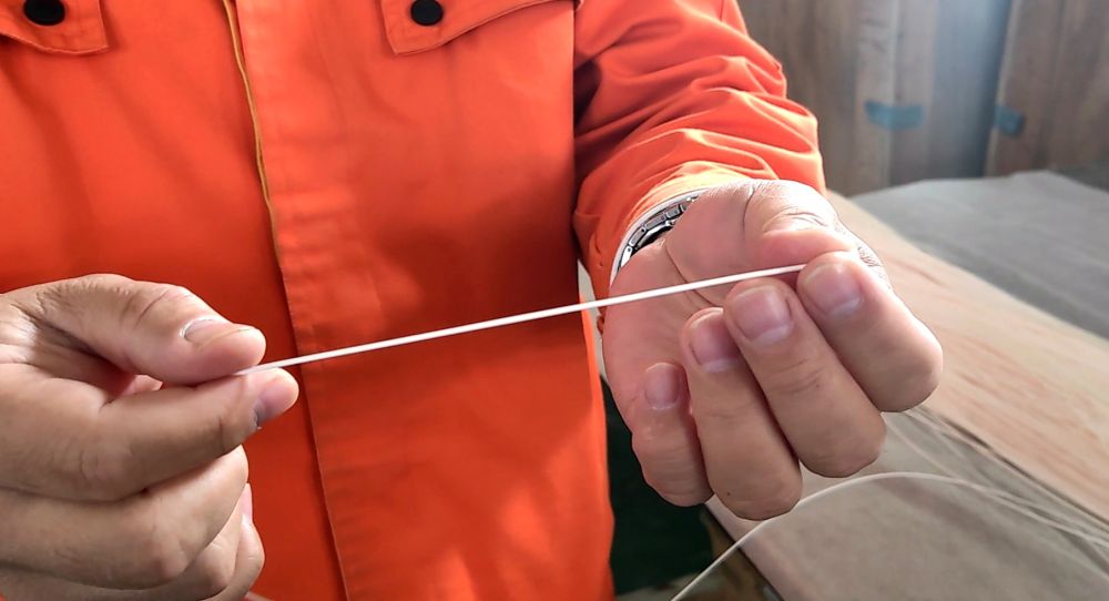 在德蓝水技术股份有限公司纺丝车间,工作人员在介绍由生物高分子材料制成的超滤膜(2024年2月23日摄)。新华社记者 潘莹 摄