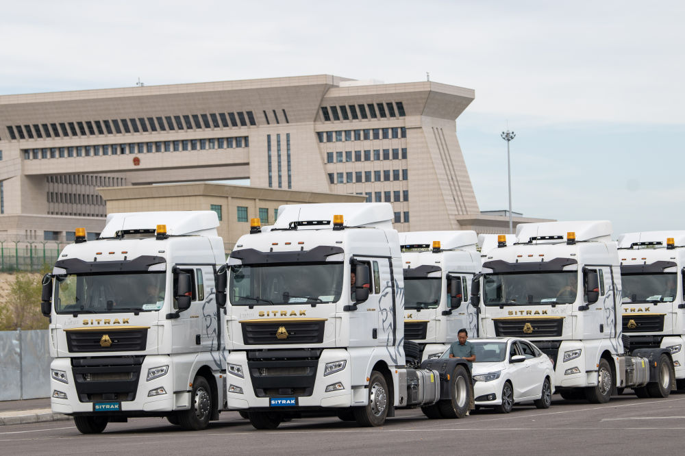 这是在霍尔果斯公路口岸等待出口的车辆(2023年9月6日摄)。新华社记者 赵戈 摄