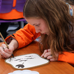 3月18日,在清华大学附属中学,美国华盛顿州中学生代表团的成员与中国中学生一起体验水墨画扇面绘制。新华社记者 殷刚 摄