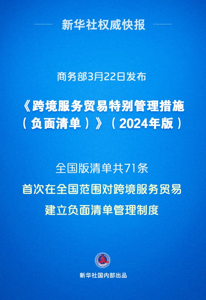 《自由贸易试验区跨境服务贸易特别管制措施(负面清单)》(2024年版)同日发布