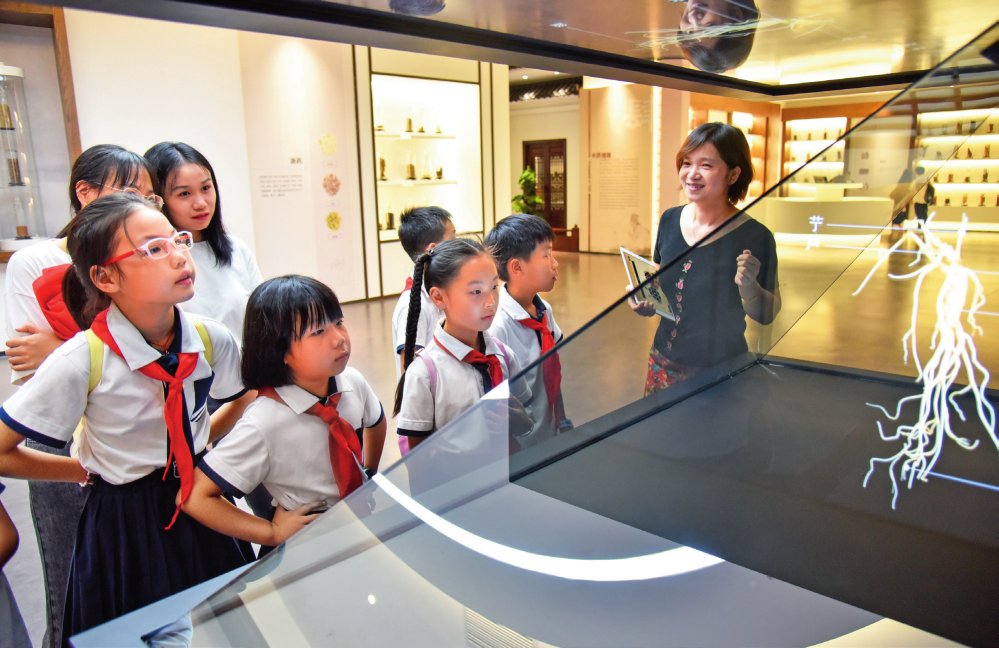 江西省高安市礼港小学学生在江西中医药文化馆参观(2021年9月24日摄)江西中医药大学供图