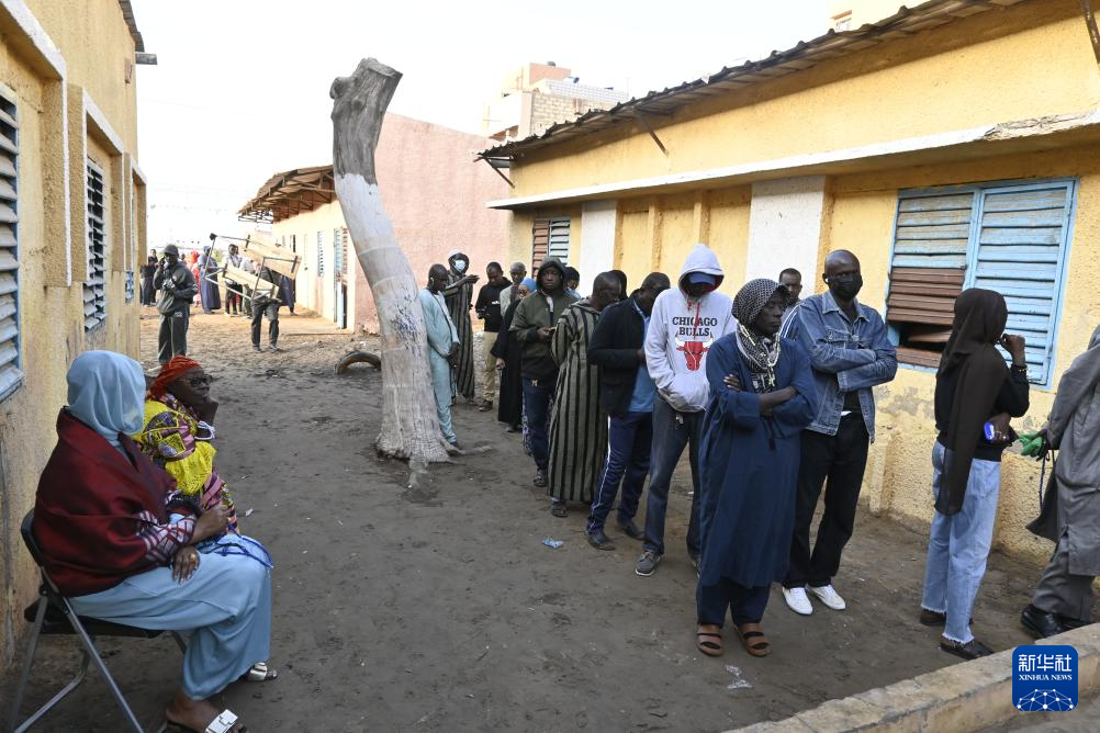 3月24日, 选民在塞内加尔首都达喀尔的一处投票站前排队。新华社发(登巴·盖伊摄)