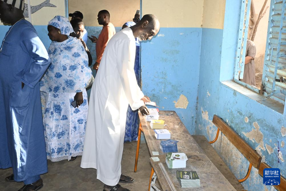 3月24日, 选民在塞内加尔首都达喀尔的一处投票站投票。新华社发(登巴·盖伊摄)