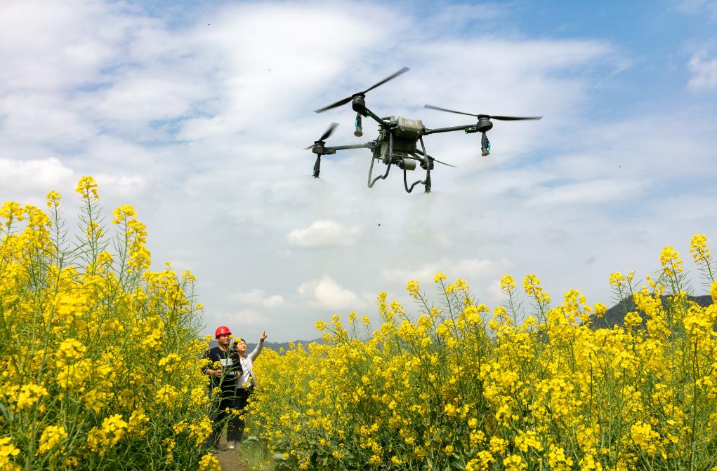 3月19日,农技工作人员在重庆市南川区东城街道三秀社区开展植保无人机飞防作业。新华社发(罗川摄)