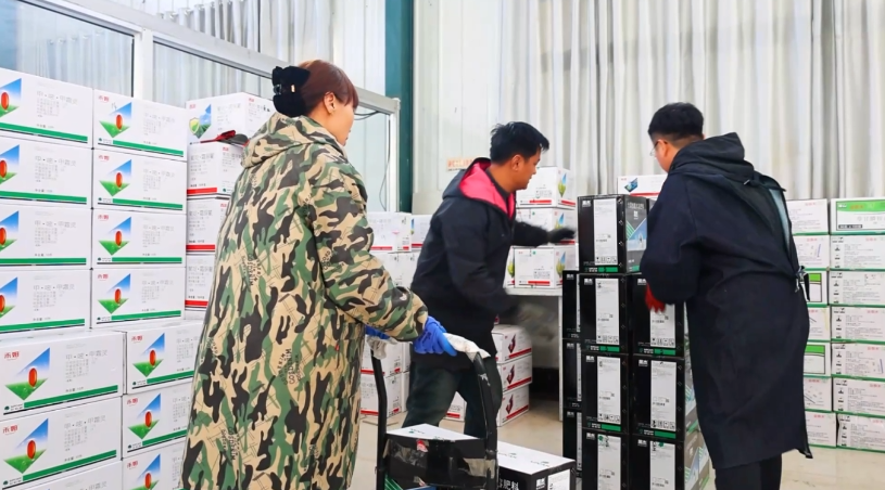 山东供销农业服务集团鲁南有限公司工作人员正在配送农资。(视频截图)