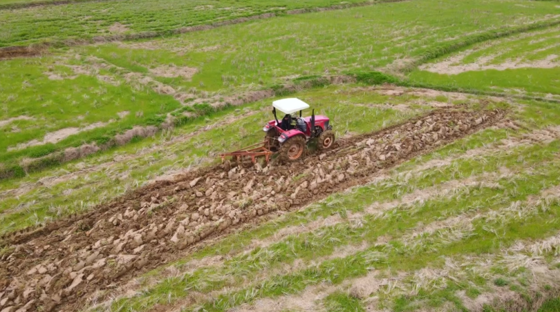 随着农业生产的机械化水平不断提升,种地越来越离不开好农机的支持。在湖南省株洲市黄陂田村的500余亩农田里,6台农机有序进行着翻耕、打草、施肥工作,为春耕按下了快进键。