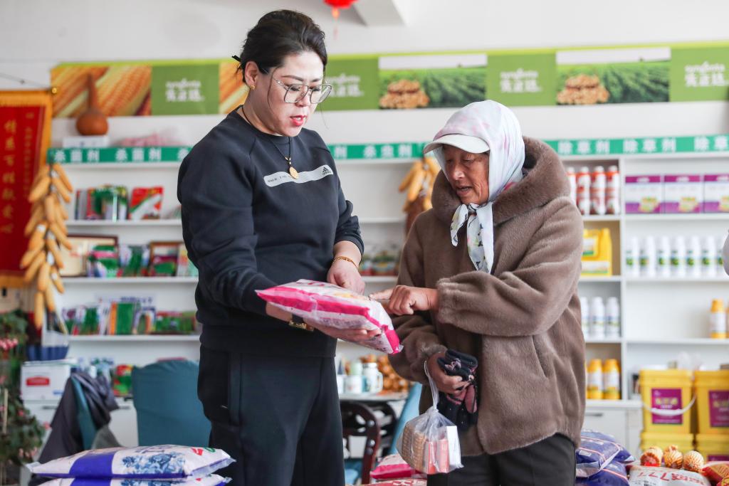 3月21日,在阜新蒙古族自治县王府镇,农户在一家农资商店选购种子。新华社记者 龙雷 摄