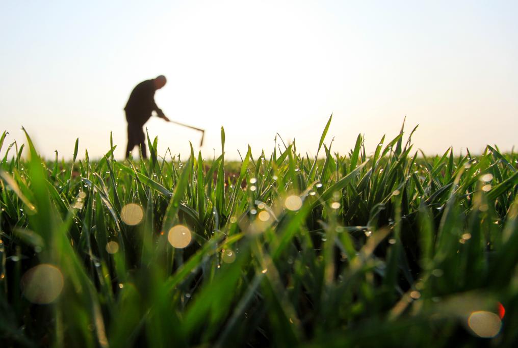 3月15日,山东省临沂市平邑县地方镇农民在麦田里劳作。新华社发(武纪全摄)