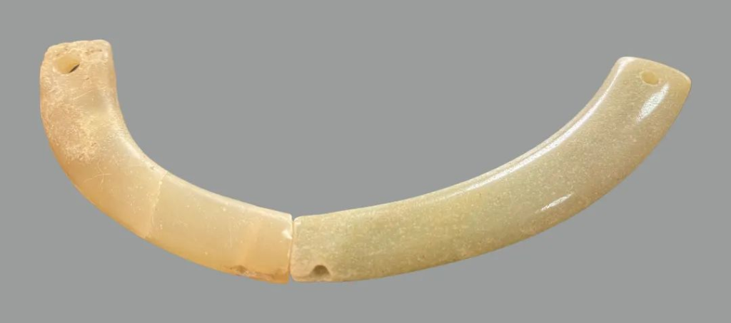 ——玦、璜、坠、蝶形器等大量玉器被发现,但随葬品数量和玉器的有无与墓坑规格似乎并不相关,表现出较为平等和富足的社会状况。