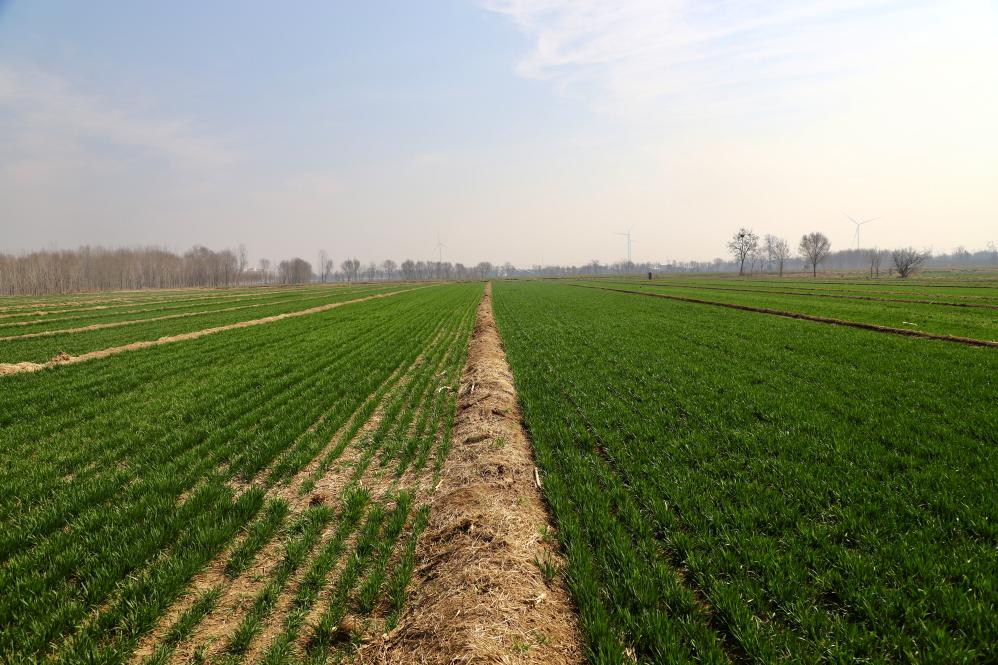 在山东省滨州市阳信县流坡坞镇,记者看到一处“别样”的麦地——以田垄为界,相邻两片农田里麦苗长势截然不同。