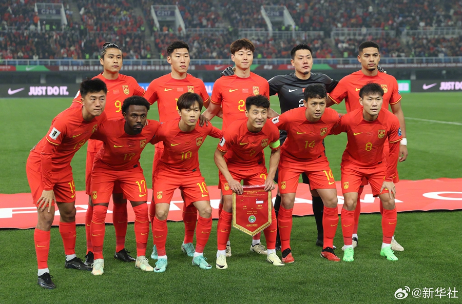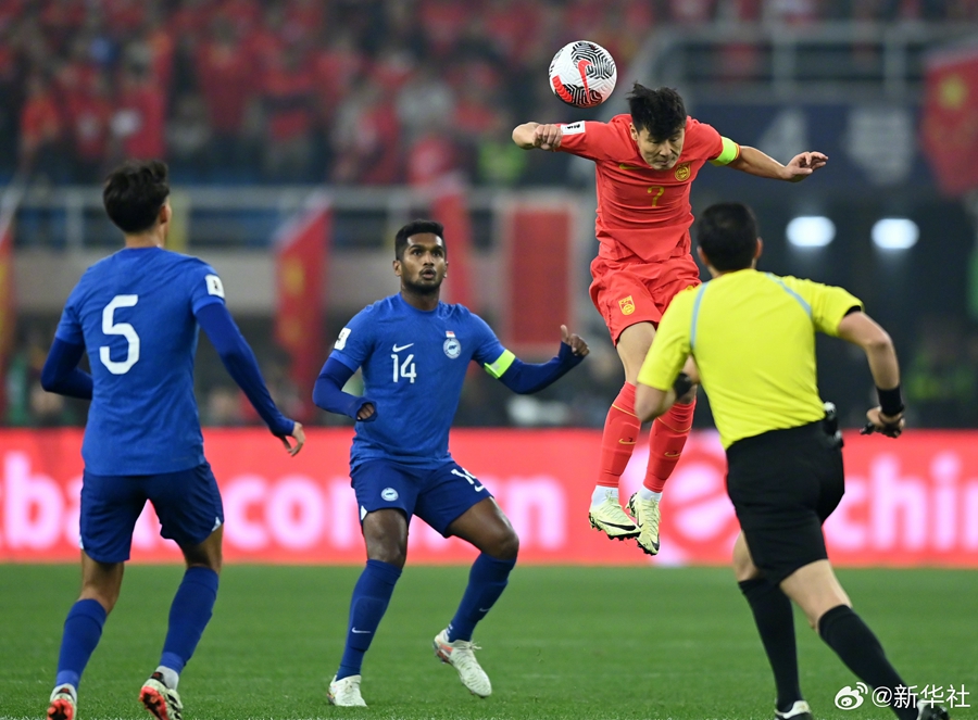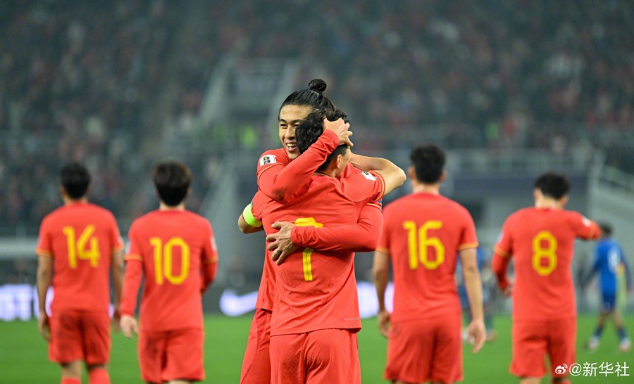 26日晚,在天津举行的2026年国际足联世界杯亚洲区预选赛36强赛C组比赛中,中国男足国家队在天津主场4比1击败新加坡队。(记者:肖世尧 张泽伟)