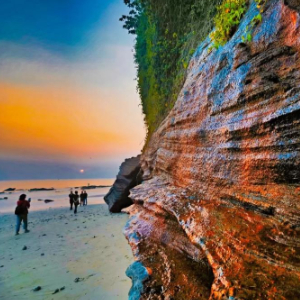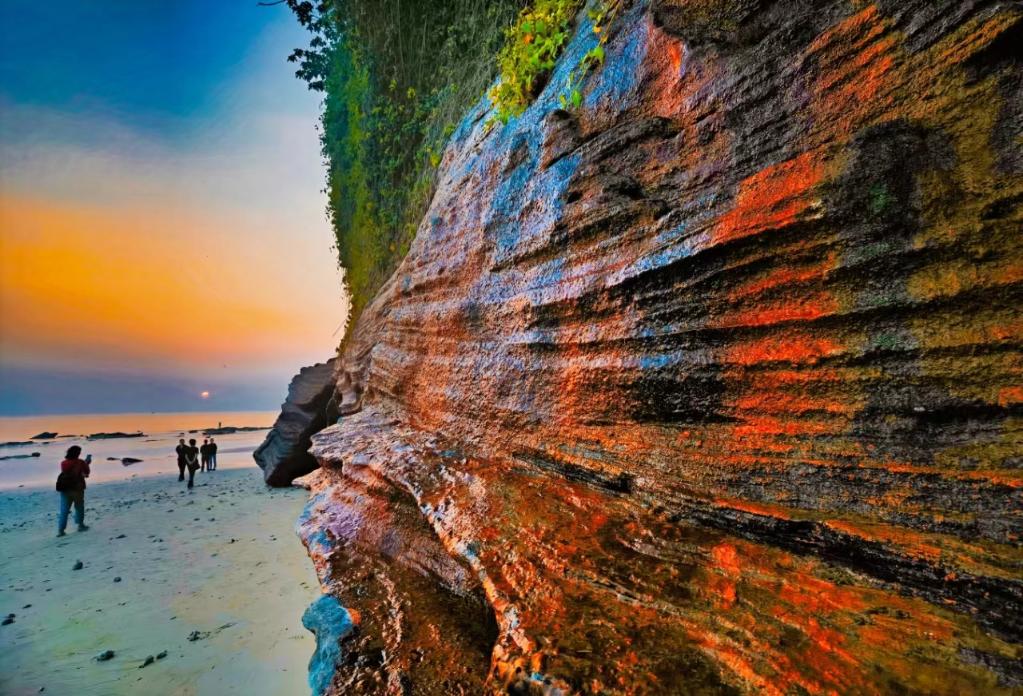 涠洲岛的滴水丹屏景区,岩石层显现出不同的颜色。(受访者供图)