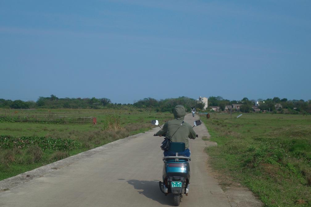 游客在涠洲岛骑电动车穿越乡野小径,前往不同的景点。 新华社记者 李欢 摄