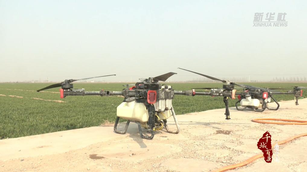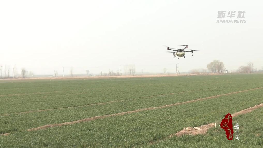 在河北省石家庄市藁城区兴安镇西里村的高标准农业示范田里,小麦春管工作展现出浓厚的“科技范”。只见一辆大型自走式四轮打药机正在田间穿梭,为小麦喷洒除草剂。另一边,工作人员操作着植保无人机,在距离麦地五六米的高度盘旋,开始了喷洒作业,一派繁忙景象。