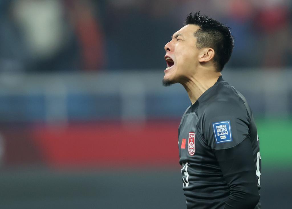 3月26日,中国队守门员王大雷在比赛中。新华社记者 赵子硕 摄
