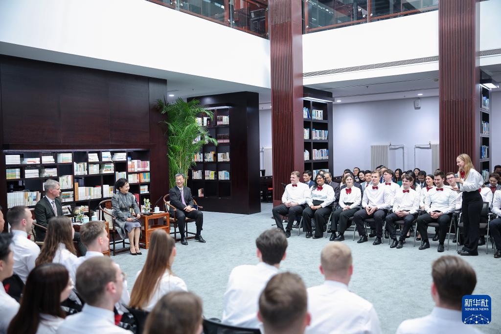 彭丽媛与师生们亲切互动,称赞同学们中文说得越来越好,表示相信这次中国之行将进一步加深他们对中国的了解,鼓励同学们回国后向家人和朋友分享在中国的见闻和感受,继续书写中德友谊佳话。