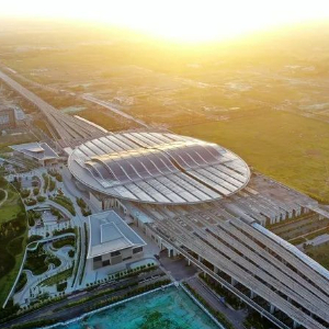 从空中俯瞰,形似“青莲滴露”的雄安站,就像荷叶上的一滴露珠,镶嵌在雄安新区昝岗片区。它也是一座智能、绿色的车站,车站设置了“智能大脑”,站房椭圆形屋顶是一座光伏电站,铺设了4.2万平方米光伏板,年均发电量可达580万千瓦时,每年能减少二氧化碳排放4500吨,相当于植树12公顷。