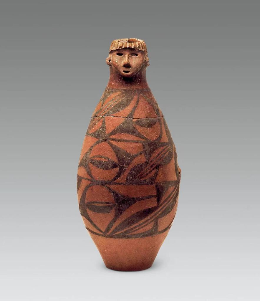 天水市秦安县大地湾遗址出土的人头型器口彩陶瓶。新华社发(甘肃省博物馆供图)
