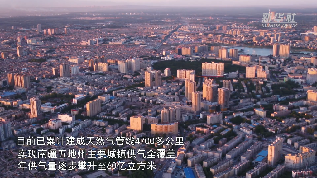 2013年,总投资64亿元的南疆天然气利民工程建成投产,形成了4干21支、总长2424公里的天然气供气管网,年供气能力达20亿立方米。作为西气东输主力气源地和南疆首要气源地,随着塔里木油田供气管网持续拓展,供气能力不断提升,目前已累计建成天然气管线4700多公里,实现南疆五地州主要城镇供气全覆盖,年供气量逐步攀升至60亿立方米,累计向南疆供气超590亿立方米,惠及42个县市、46个农牧团场、800多万各族群众。