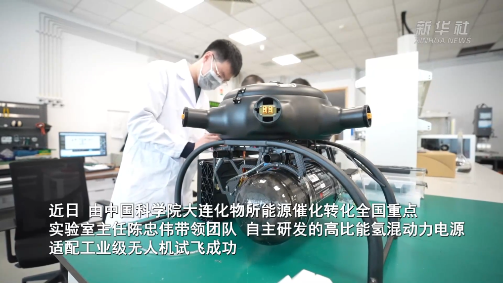 近日,由中国科学院大连化物所能源催化转化全国重点实验室主任陈忠伟带领团队,自主研发的高比能氢混动力电源适配工业级无人机试飞成功,氢混动力电源比能量达每千克600瓦时,燃料电池稳定输出2030瓦,具有系统稳定性高、效率高、可靠性高、寿命长等特点。
