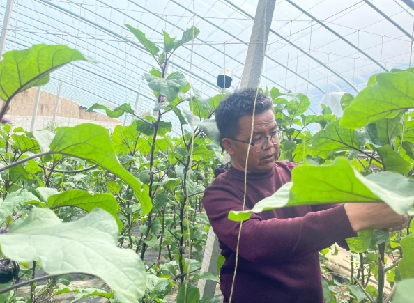 欧自安在蔬菜日光温室内劳作。新华社记者 程楠 摄