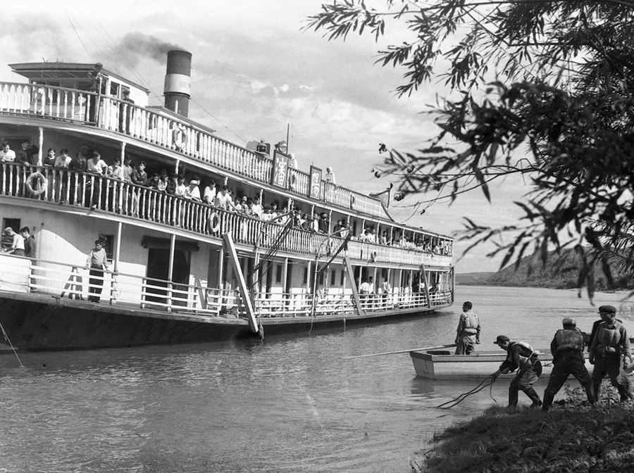 1956年,满载大兴安岭建设者的客货轮到达目的地。