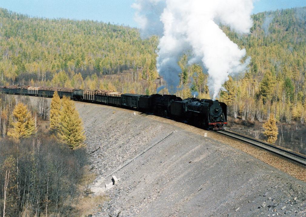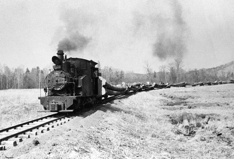 1963年,小兴安岭上甘岭林业局贮木场上满堆着木材。