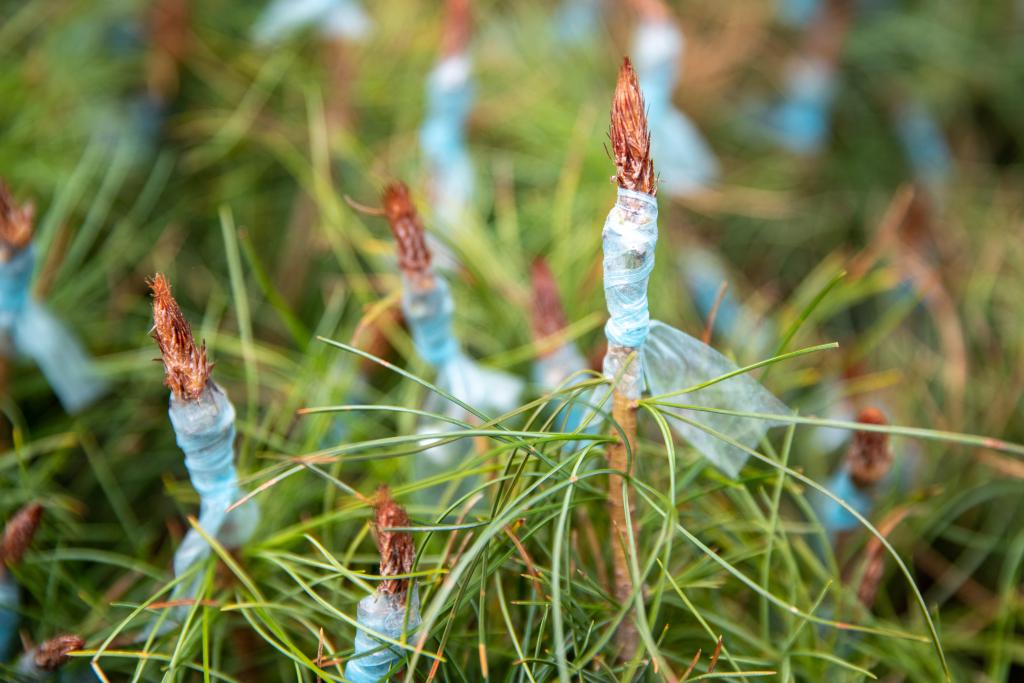 这是伊春森工集团红松种苗繁育基地轻基质容器内的红松嫁接苗(2023年5月20日摄)。