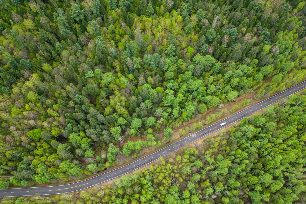 2023年5月21日,车辆在位于小兴安岭腹地的五营国家森林公园内穿行。