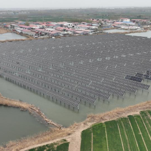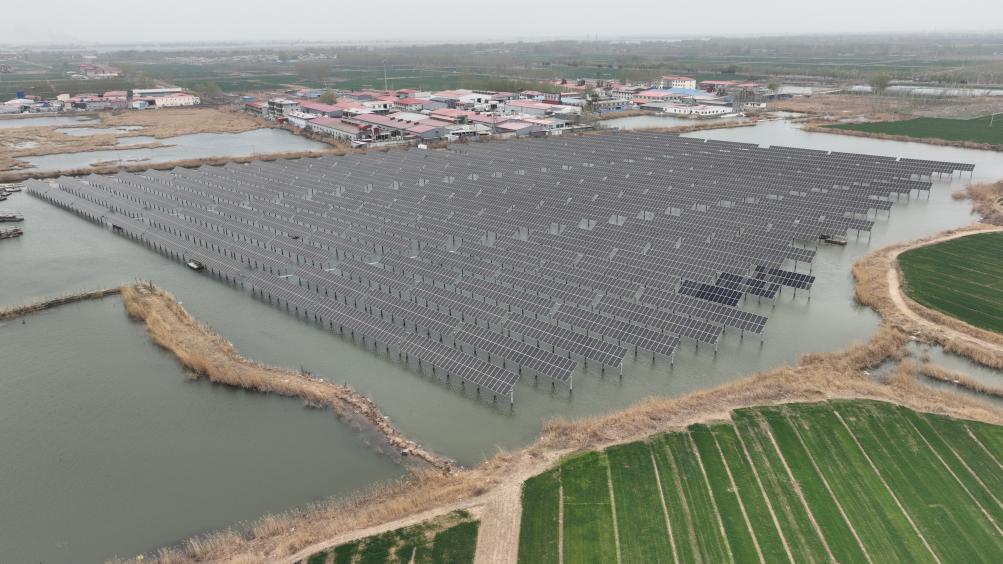 位于雄安新区雄县的坑塘水面分布式光伏电站。新华社记者王昆 摄