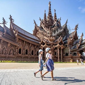 3月29日,游客在泰国芭堤雅真理圣殿游览。新华社记者 王腾 摄