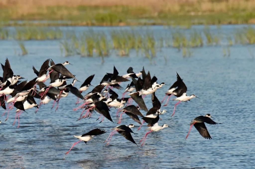 在雄安新区白洋淀拍摄的鸟群(2022年4月15日摄)。新华社发(周龙山 摄)
