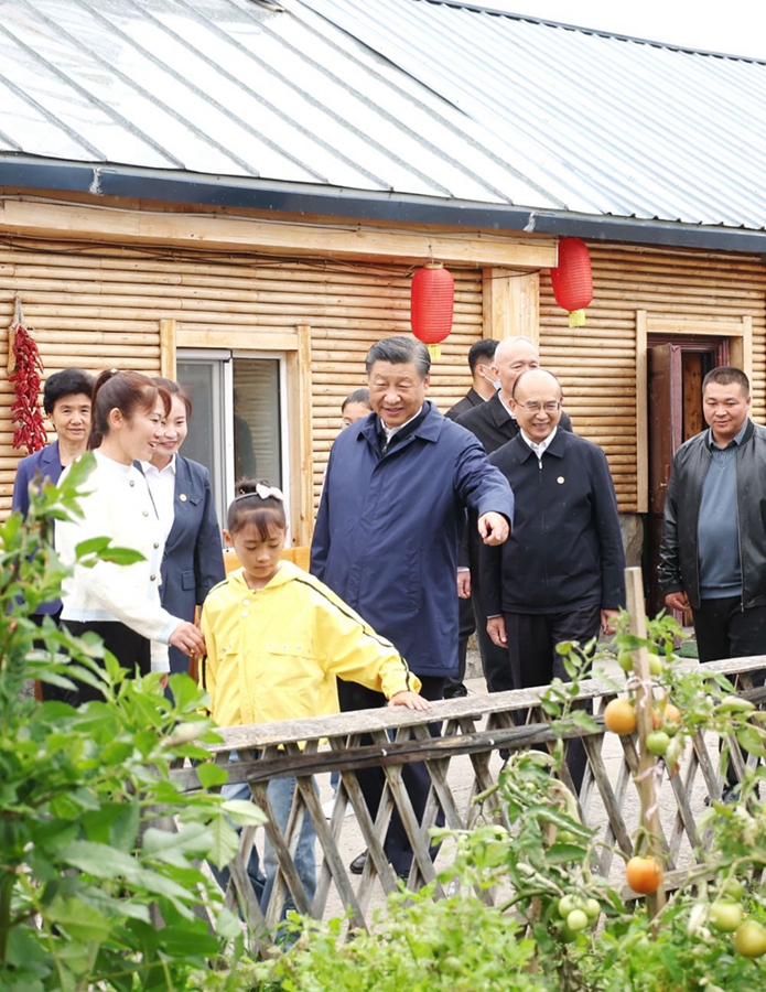 ↑2023年9月6日下午,习近平在大兴安岭地区漠河市北极村村民史瑞娟家的民宿小院考察。