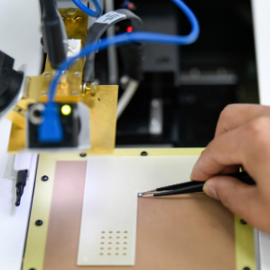 在天府新区集成电路设计创新公共平台工作间内,工作人员将待检芯片放上操作台,测试静电的潜在破坏作用。新华社记者胥冰洁 摄